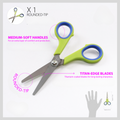 1x Rounded-tip scissor with medium-soft handles and titan-edge blades for long-lasting sharpness.