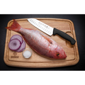 • Santoku with Granton Edge: The hollow-ground Granton edge creates air pockets that reduce friction and prevent food from sticking, ensuring smoother and cleaner cuts.