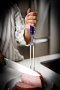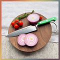 The knives undergo a meticulous computerized blade grinding and polishing process, ensuring a razor-sharp edge with a sleek, mirror-like finish. Hand-sharpened for precision, they glide effortlessly through meat, vegetables, and more. The stainless-steel bolster not only adds a touch of design elegance but also serves as a finger guard for added safety during use.