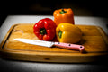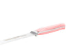 Gift Box Package with a 8 pieces set1 Utility Knife (Pink) | Serrated Edge | 6'' (15 cm)1 Carving Fork (Purple) | 7'' (18 cm)1 Santoku's Knife (Blue) | Granton Edge | 7'' (18 cm)1 Chef's Knife (Green) | Regular Cut | 8'' (20 cm)1 Bread Knife (Yellow) | Serrated Edge | 8'' (20cm)1 Paring Knife (Orange) | Regular Cut | 4'' (10 cm)1 Scissor (Red) | Take apart design | 8 1&2 (21.59 cm)
