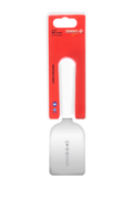 The Mundial W5689 Mini Turner from our 5600 series is a high-quality tool designed for smaller food items. With a 2.5-inch food service grade Stainless Steel blade, this turner is perfect for serving eggs, flipping pancakes, and other delicate tasks. The ergonomic white polypropylene handle ensures a secure, non-slip grip, providing comfort and control for both professional and home use. Compact and versatile, this mini turner is ideal for residential kitchens and culinary tasks requiring precision.